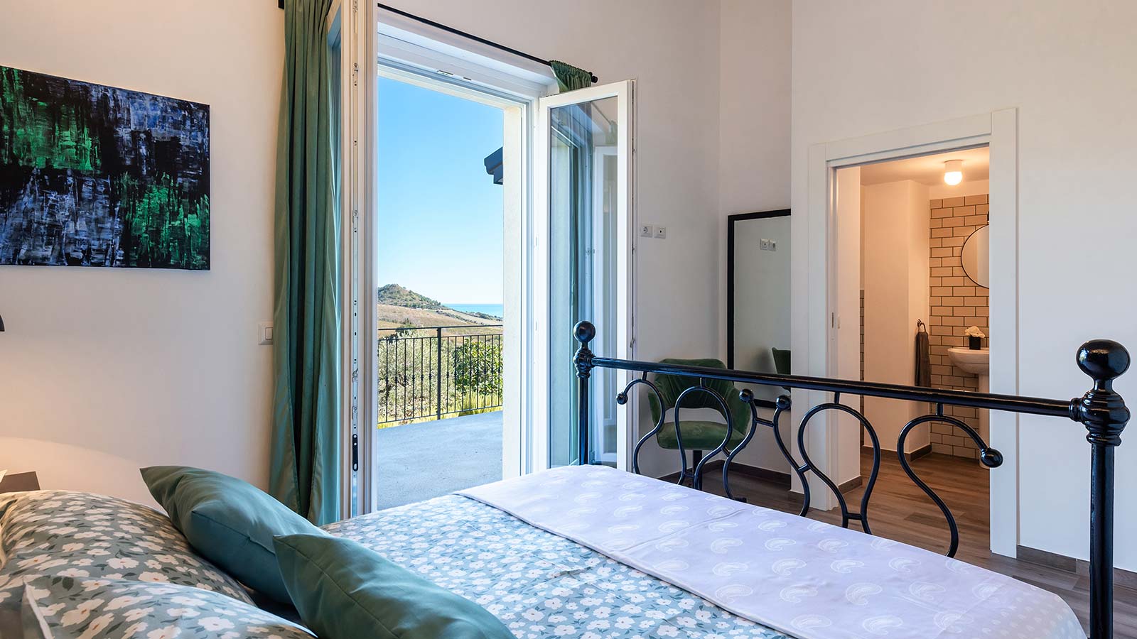 Dimora Campo delle Mura è strutturata su un unico piano, dotata di ampie vetrate che illuminano gli ambienti e che permettono di godere dei meravigliosi panorami. Dispone di 4/6 posti letto, ed è composta da un soggiorno cucina molto ampio e ben attrezzato con tutti gli elettrodomestici, un soppalco studio che si affaccia sulla zona giorno, una camera da letto matrimoniale con bagno privato, una camera doppia con soppalco, un bagno comune.